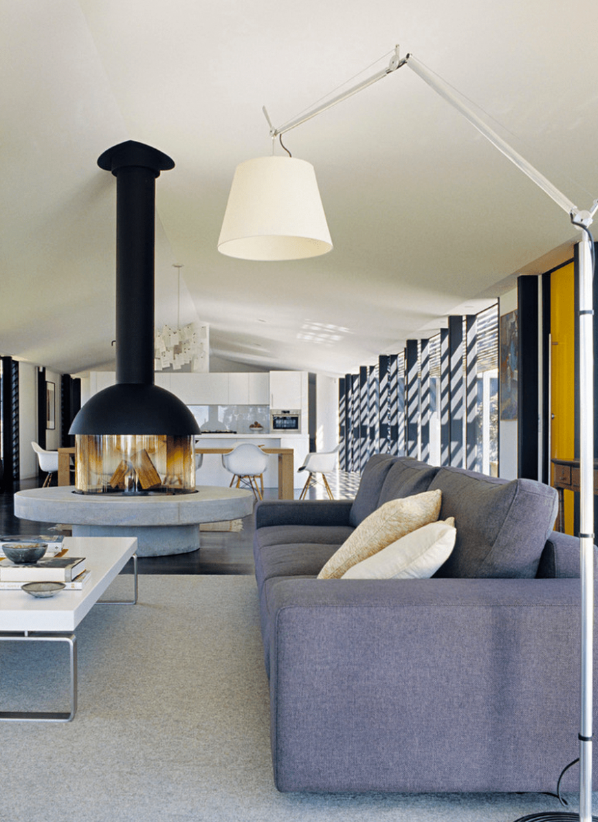 Безусловно, к ним можно отнести трехсторонние камины. Особенно, если конструкция не предусматривает стекла. Тогда кажется, что прямо на ваших глазах происходит магия. Есть и еще один плюс: когда камин выключен, гостиная и кухня воспринимаются как единое пространство. Рейтинг производителей диванов ищите у нас на сайте флет-хаус.