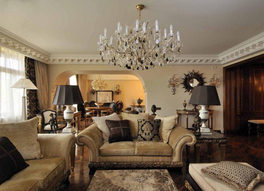 Ни одна гостиная в классическом стиле не может обойтись без люстры