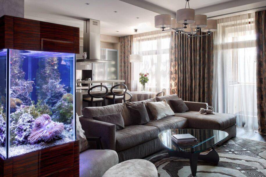 В перечень нестандартных элементов интерьера входят частные библиотеки, аквариумы и террариумы, авторские картины, оригинальные фотообои.