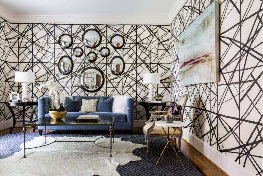 - Стену у зоны отдыха украсит мелкий рисунок на обоях, мозаика, абстрактные рисунки.