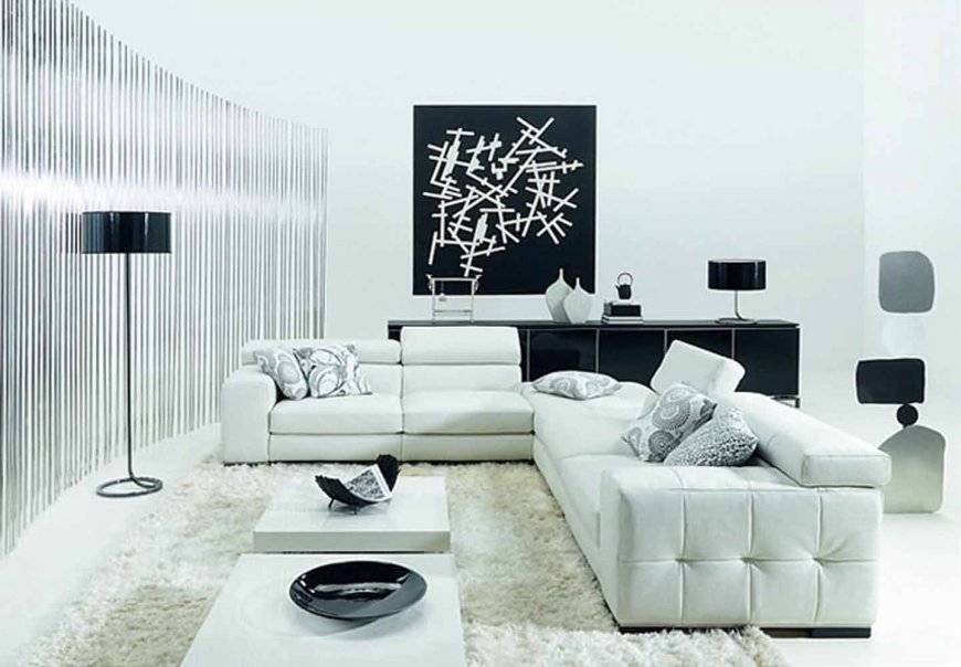 Оформление гостиной в белом цвете имеет массу преимуществ:
