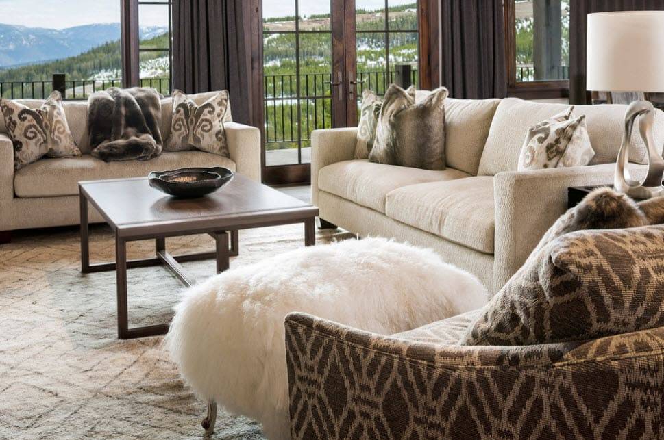 Шкуры животных отлично дополнят интерьер, оформленный в стиле шале