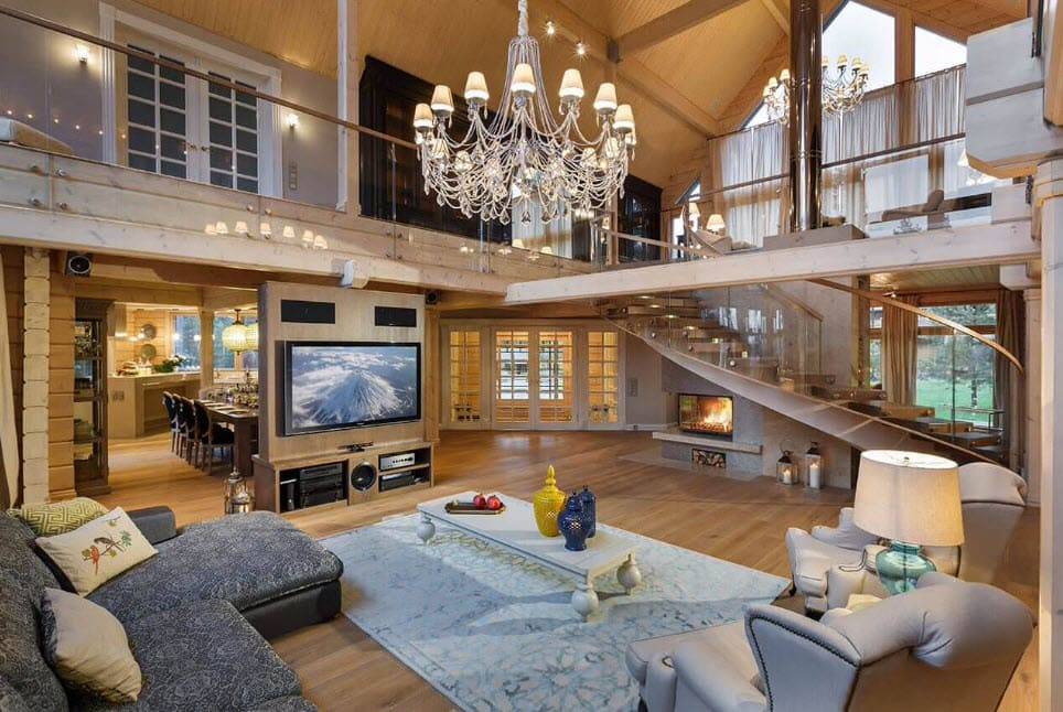 Интерьер гостиной комнаты в загородном доме