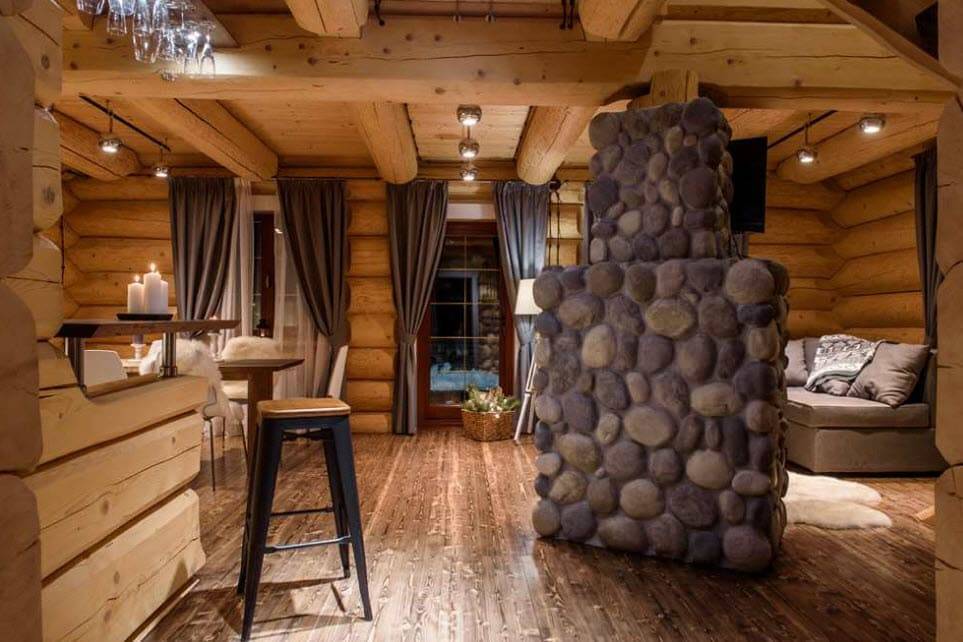 Чаще всего при оформлении интерьеров в стиле шале в качестве отделки используют дерево и камень