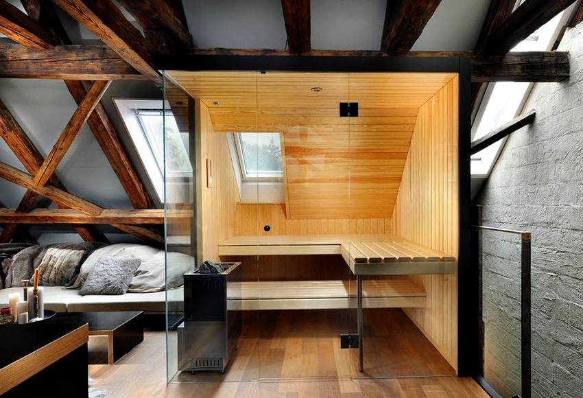 Если же вы выбираете темное, то даже сокращение объема может быть обыграно правильно – как создающее камерность,уют в вашей бане. Для этого количество предметов в помещении должно быть невелико, а сами они – пропорциональны относительно размеров помещения.