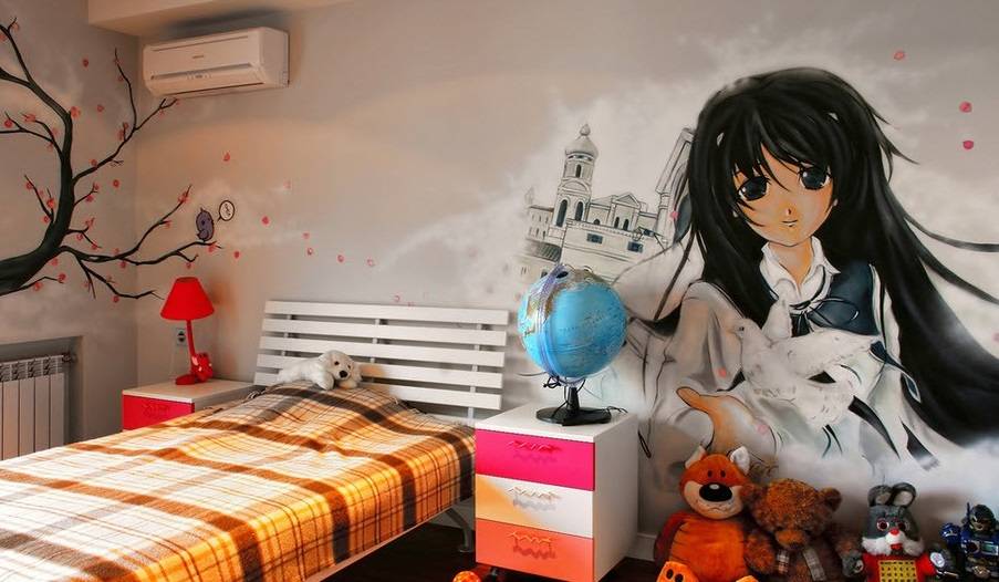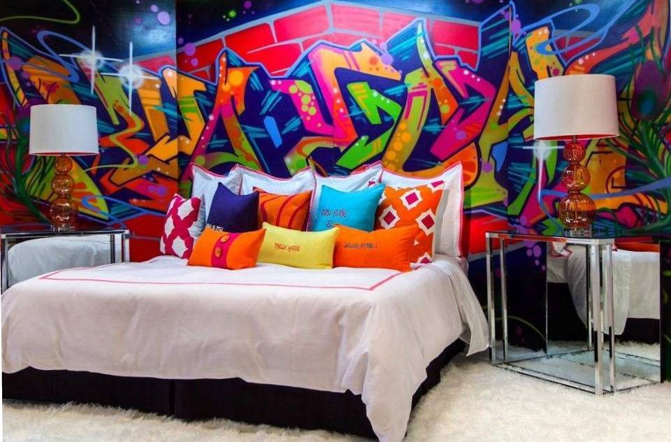 Граффити – отличный способ показать подростковый максимализм, наполнить комнату озорным молодёжным или даже бунтарским духом, а также подчеркнуть вкусы и предпочтения владельца комнаты.