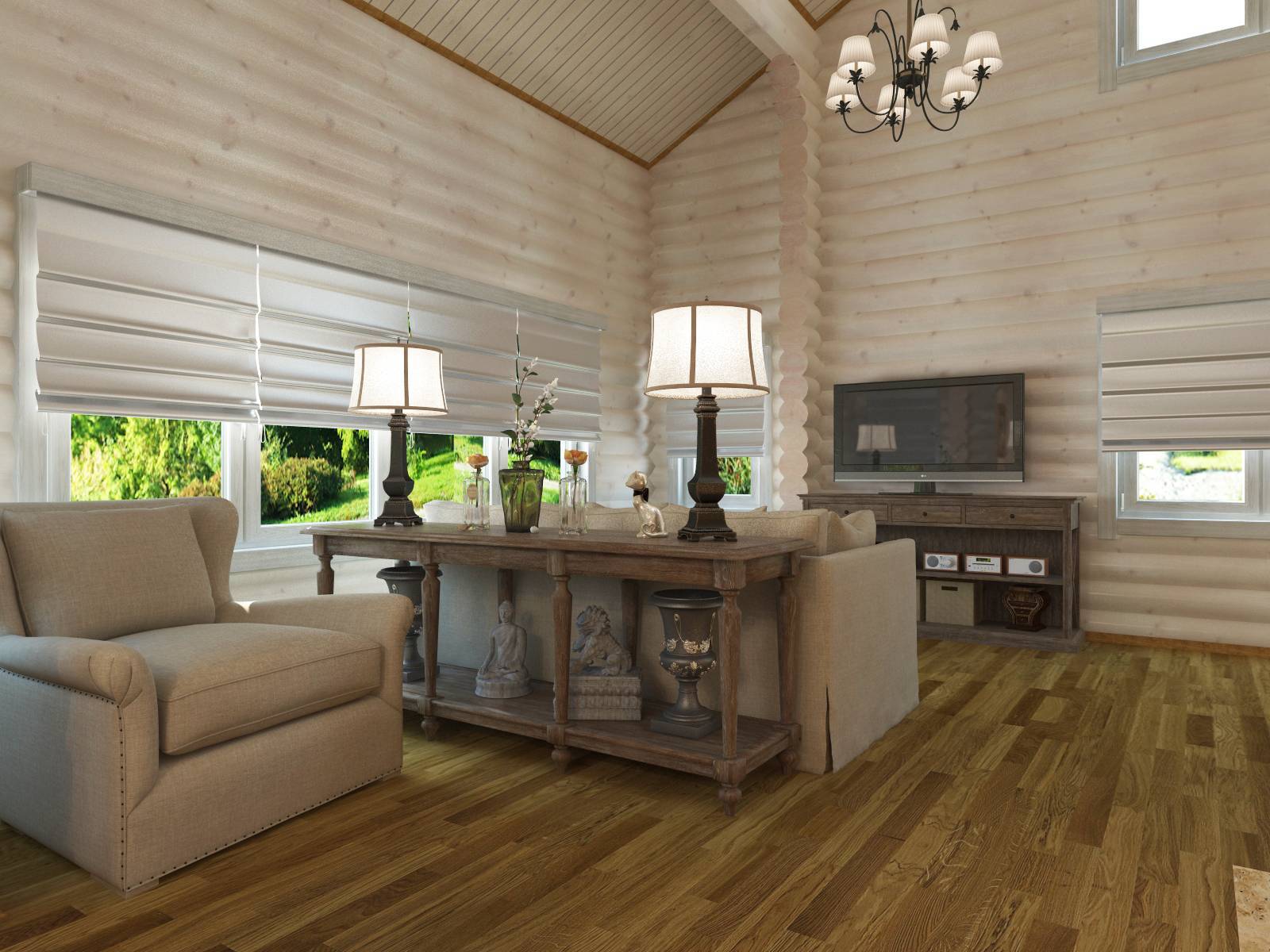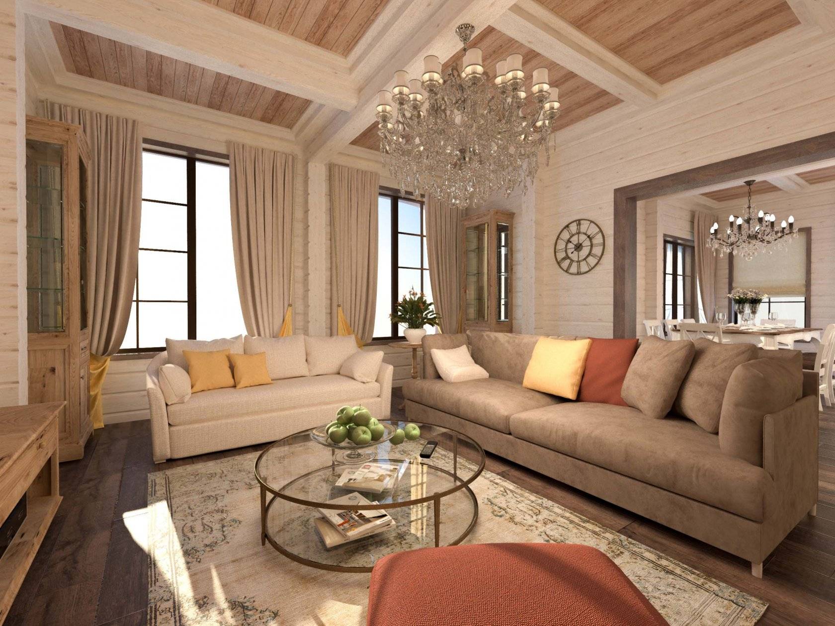 Особенно хорошо смотрится гостиная в классических стилях — шале, прованс, английский.