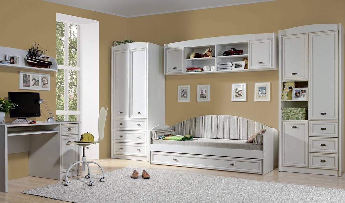 Для крошки можно использовать героев любимых сказок и мультфильмов в оформлении. Дошкольнику требуется больше места для хранения книг и спортивных аксессуаров. Школьная пора постепенно вытеснит игрушки из комнаты. Подростки желают самостоятельно решать, как будет выглядеть их территория.