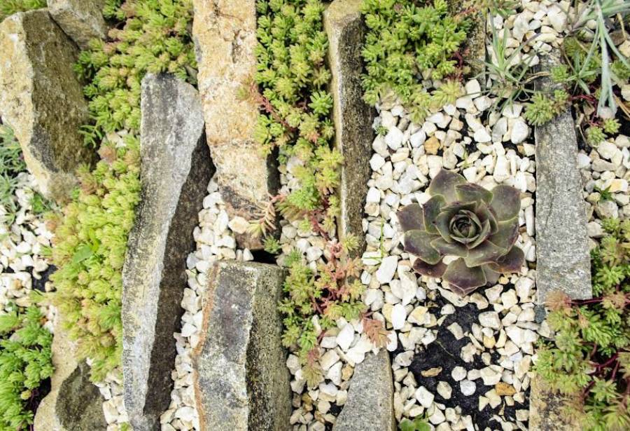 - так как грунт изолирован от гравия геотекстилем, в материале делают разрезы, чтобы посадить растения;