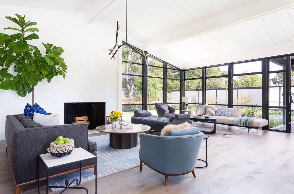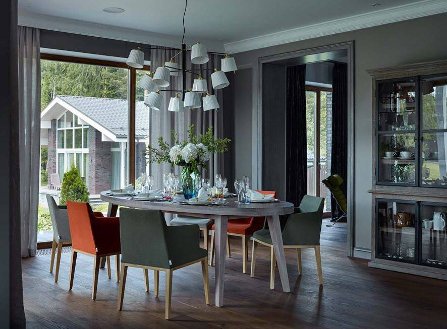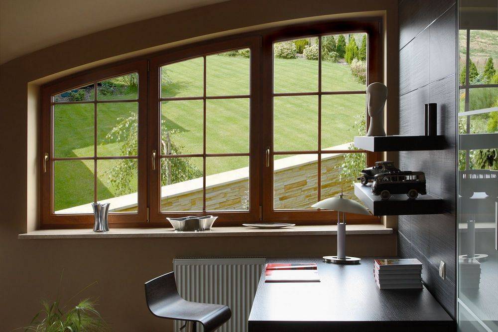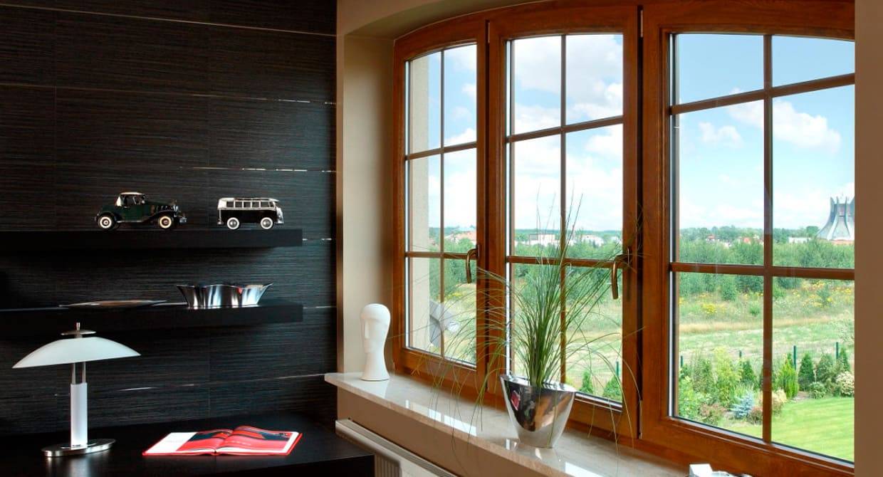 Особой популярностью пользуются панорамные окна, обеспечивающие расширенный обзор, позволяя тем самым насладиться видом на сад или город. Подчеркнуть красоту конструкции, сделав на ней акцент можно, используя графитовые или серые оттенки профиля. Панорамные окна лучше всего смотрятся в стиле хай-тек, предпочитающем применение современных технологий. Возможность изменения цвета позволит подчеркнуть современное оформление жилища, ведь хай-тек обожает серый цвет. Также цветные рамы можно использовать для интерьера комнат детей, что позволяет сделать его более ярким и оригинальным. Главное, чтобы выбранный цвет не вызывал у ребенка тревожность и перевозбуждение.