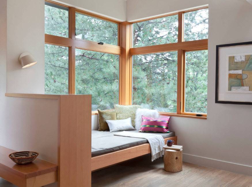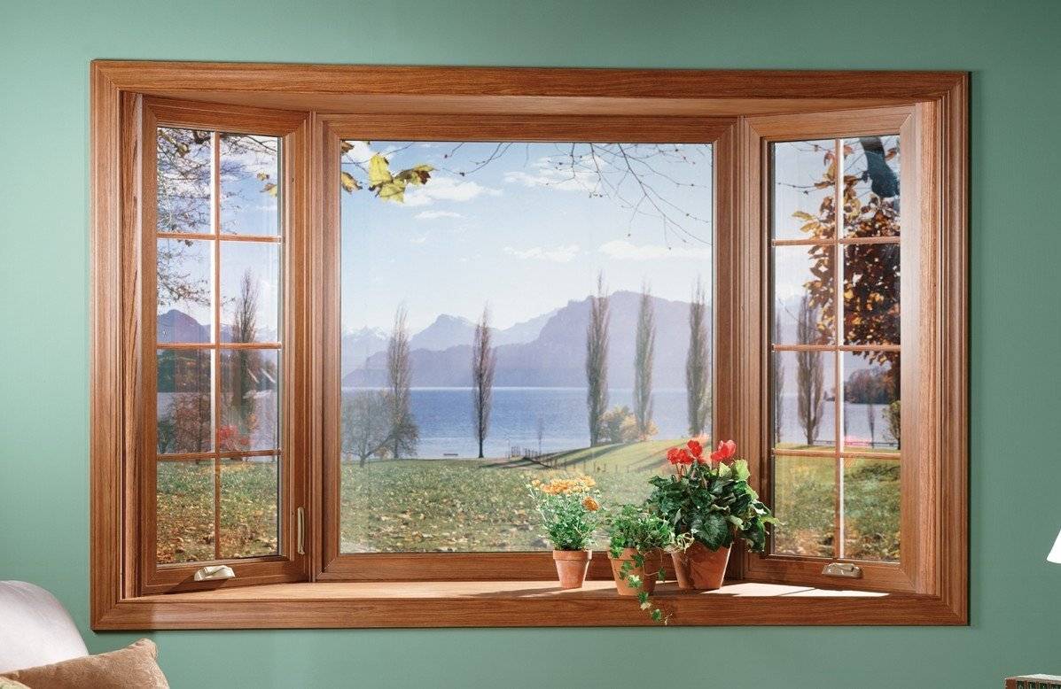 Сочетание подобных конструкций с реальными предметами интерьера (например, можно украсить окно деревянной рамой или настоящим подоконником) позволит придать изображению объем и правдоподобность.