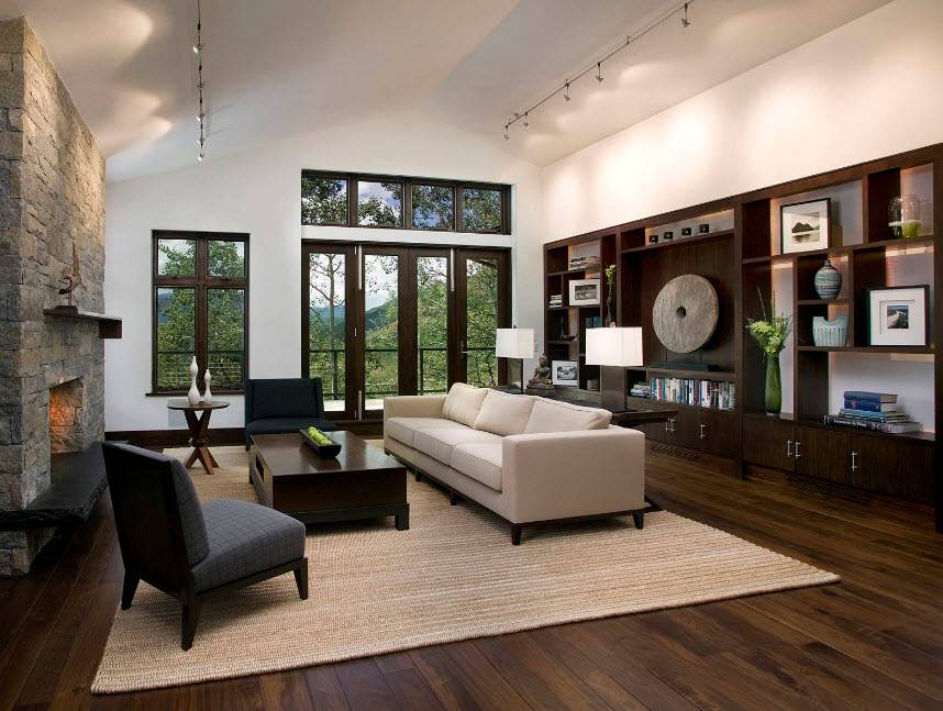 В гостиных комнатах можно сделать как настенные, так и потолочные ложные окна. Их применение не только зрительно увеличит пространство, но и сделает интерьер более уютным и домашним. Ведь именно в гостиной по вечерам собирается вся семья для просмотра телевизора, бесед и просто для отдыха.