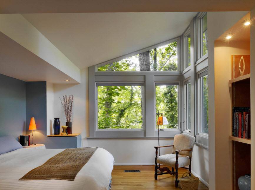 В спальнях фальш окна желательно делать с имитацией восходящего солнца. Такой вид будет способствовать хорошему настроению