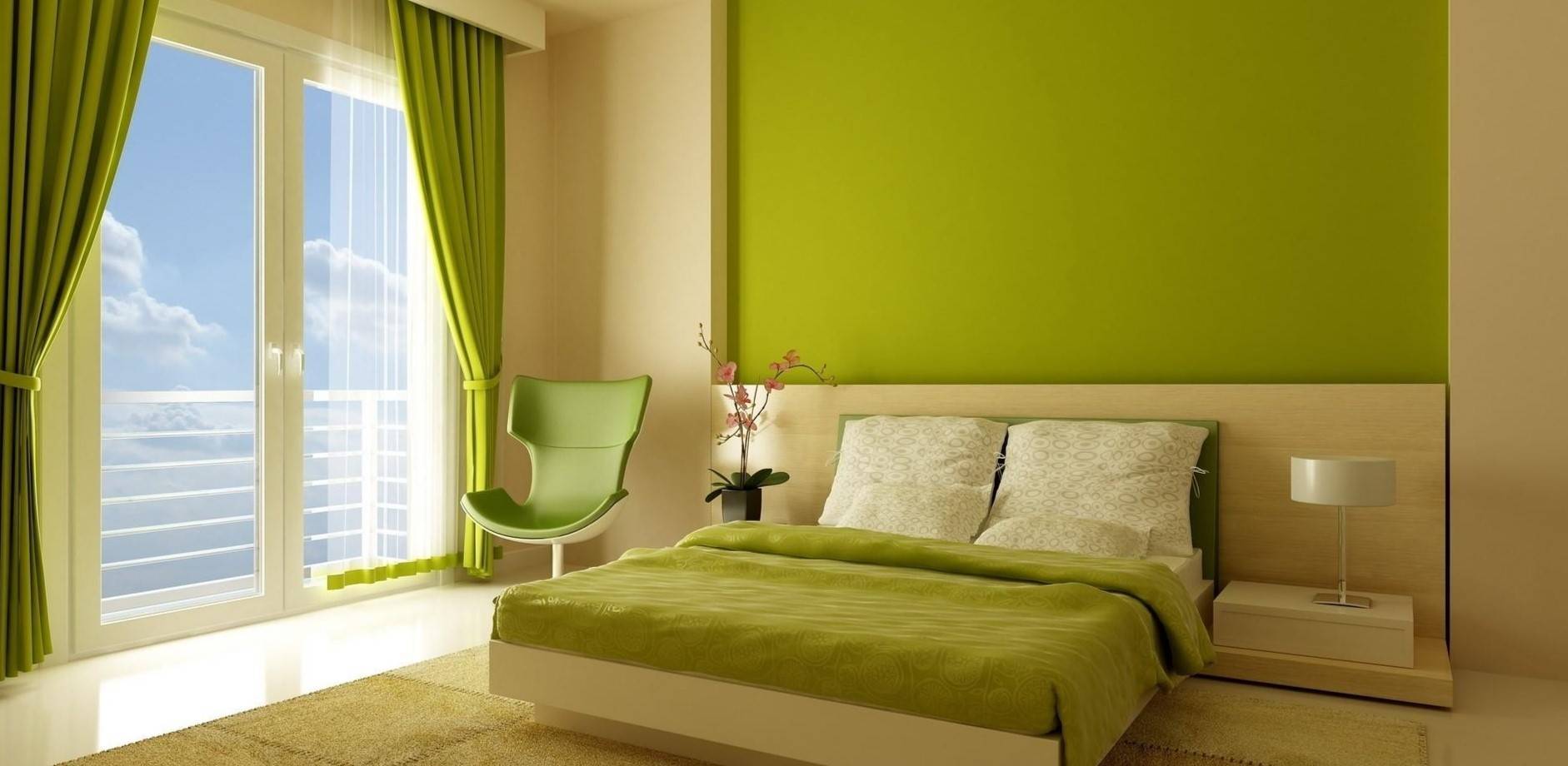 Если расположить окно у изголовья кровати, примените технику художественной росписи. Яркие пейзажи с сочной зелёной травой подарят вам заряд бодрости и прекрасного настроения на весь рабочий день.