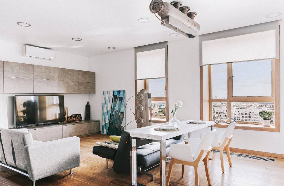 Создание декоративного окна на стене дает возможность изменить атмосферу в комнате и скорректировать планировку. Для квартир-студий это отличное решение.