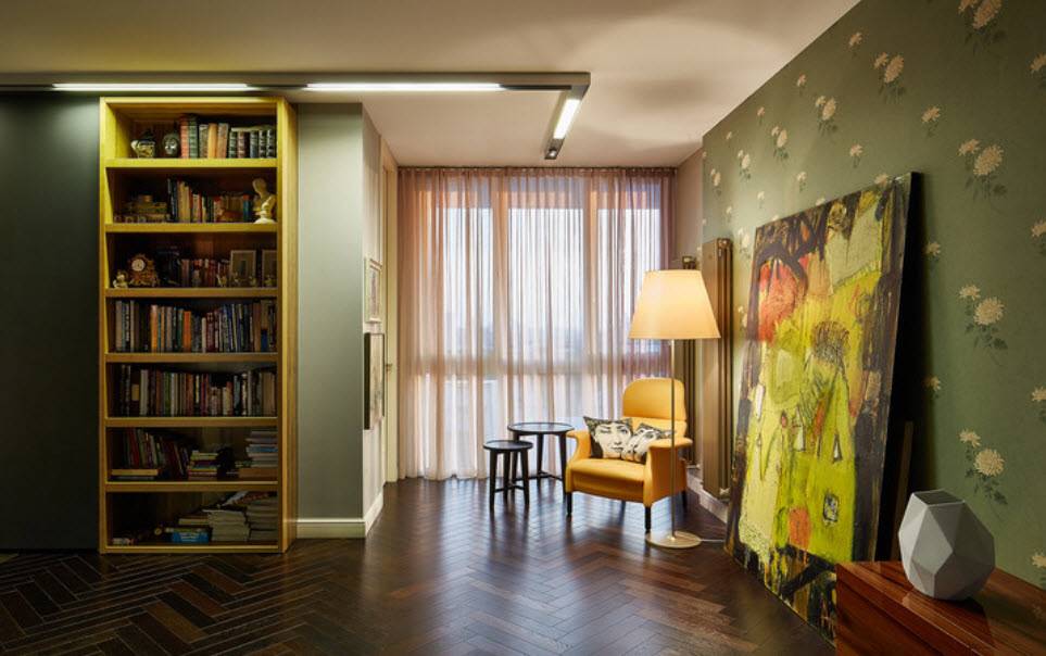 Светоотражающая поверхность мебели создаст эффект глубины и поможет расширить площадь комнаты. Такое фальш-окно, в отличие от первых двух, подвижное, то есть при перестановке мебели оно также может переместиться на другую стену или в соседнюю комнату.
