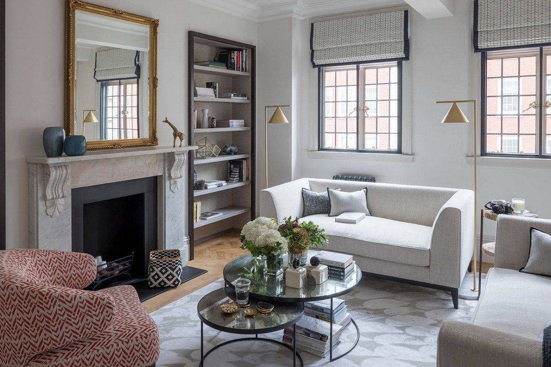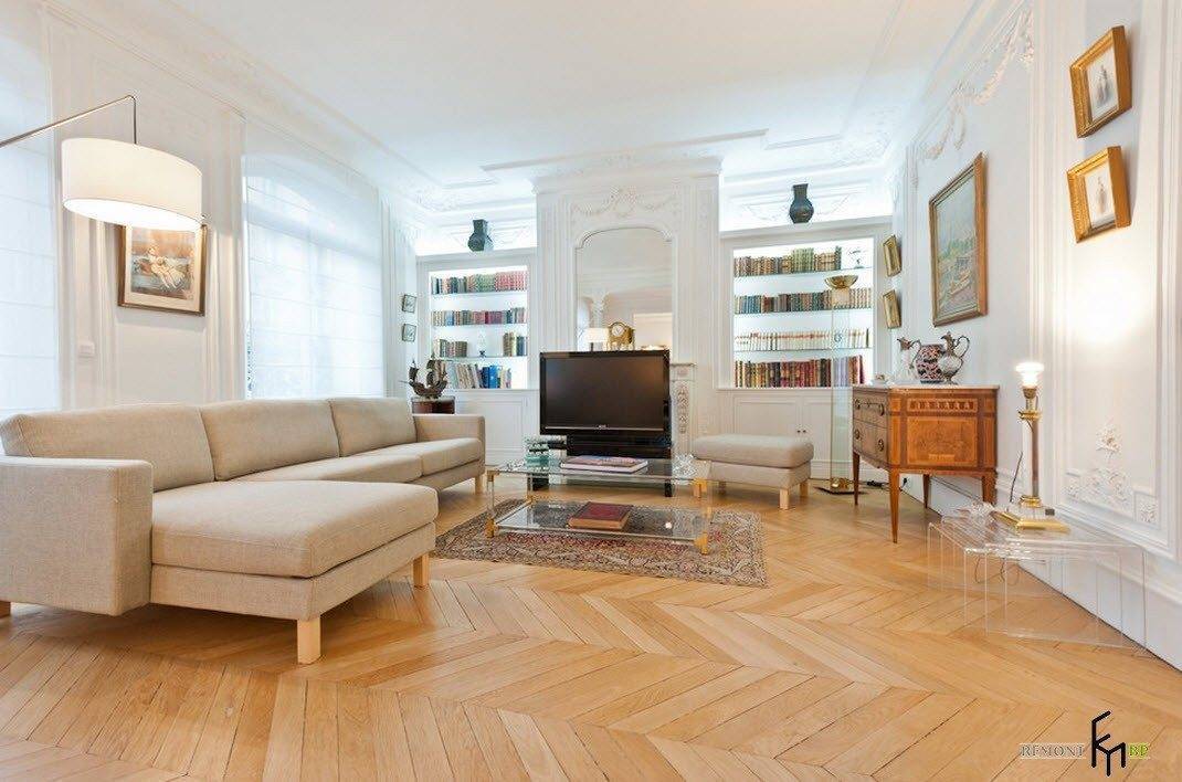Продумывание дизайна гостиной в стиле неоклассика следует начать с поиска его характерных особенностей