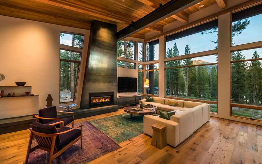 Задуматься над тем, каким должен быть дизайн гостиной в загородном доме, стоит еще на этапе проектирования будущего жилья. Расположение окон, дверей и лестниц, наличие панорамного остекления влияет на общее восприятие пространства и комфорт. На этом этапе также выбирают место для дровяного камина.