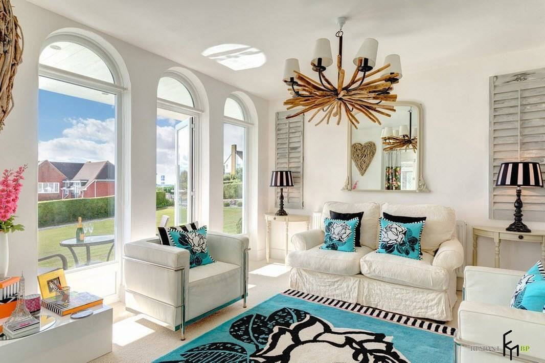 Независимо от своего стиля, интерьер гостиной в доме располагает искусственными светильниками. Их виды известны всем – люстра, бра, «точки», торшеры, лампы.