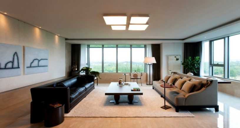 - Многоуровневые изделия со сложным дизайном будут лучше всего подходить для оформления гостиной с высоким потолком.