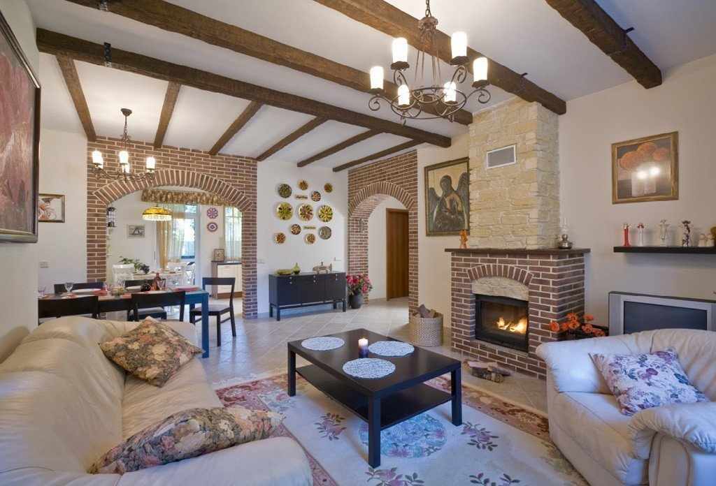 - натуральная кирпичная кладка дома может использоваться как часть отделки.