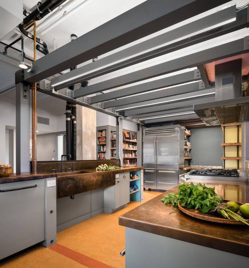 Очень важно правильно выделить в помещении рабочую зону, где будет происходить готовка пищи. Делать это следует ещё на стадии планировки. Поскольку помещение большое, можно использовать самые разные способы зонирования