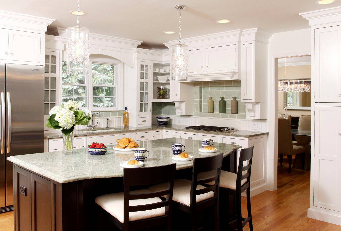В зависимости от ваших потребностей в кухне устанавливается маленький или большой обеденный стол. Довольно часто вместо привычного большого обеденного стола устанавливают удлиненный прямоугольный стол или барную стойку. Это зависит от вашего вкуса и потребностей, количества членов вашей семьи, количества гостей которых вы принимаете.