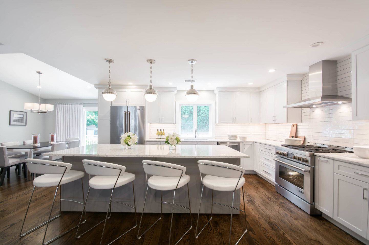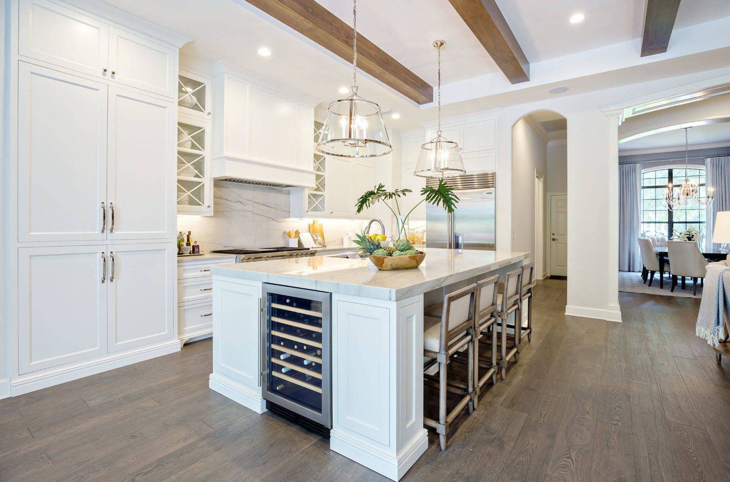 L-образная модульная кухня довольно популярна, особенно когда она примыкает к другой жилой комнате. Этот тип простой, но эффективной кухонной конфигурации предлагает великолепный декор не только для функциональной кухни, но и гостиной. Отделка кухонного гарнитура буквы L — удачный вариант, служащий милой барной стойкой для завтрака. Предлагая комфорт, практическое распределение пространства и достаточное количество столешниц, шкафов для размещения всей необходимой бытовой техники на кухне, L-образный гарнитур — хороший, классический выбор.
