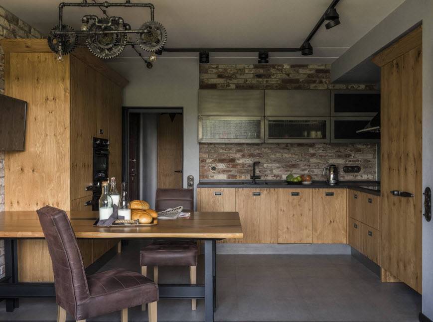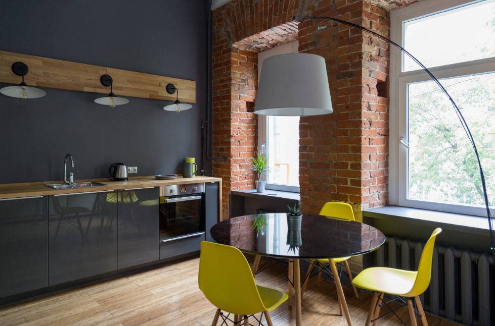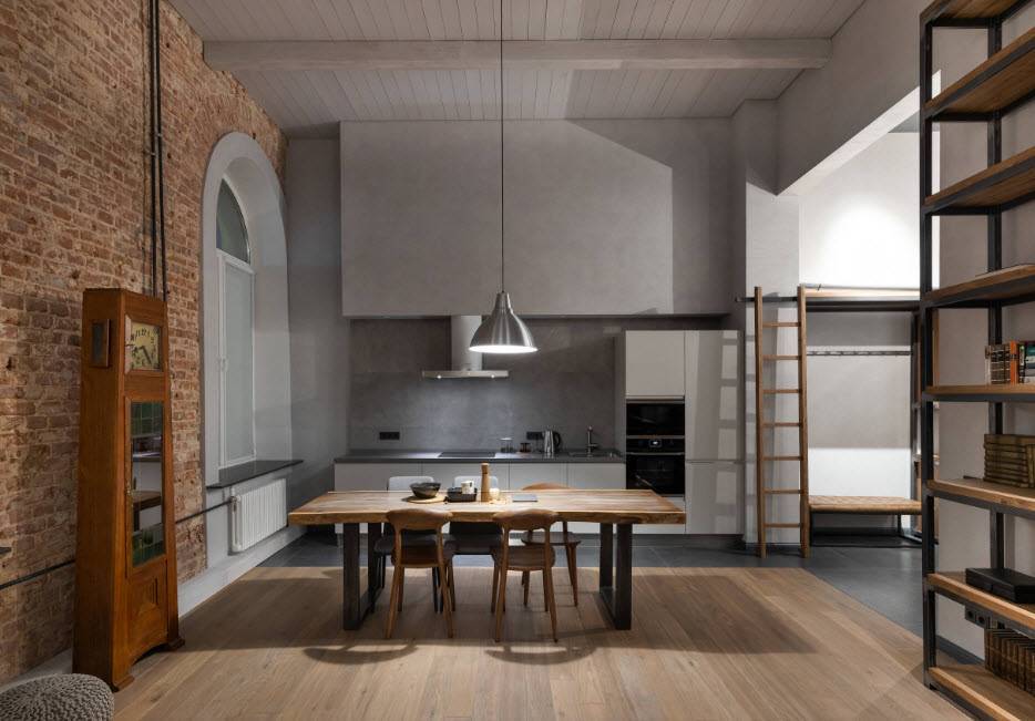 Характеризуется неоштукатуренным кирпичом, открытыми трубами, примитивными металлическими покрытиями, мебелью в стиле минимализма. Вся эта тенденция навеяна заводскими помещениями.