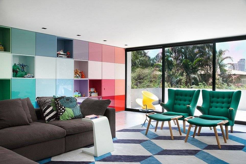 По цветовой палитре стиль 70-х напоминает бохо – ограничения в выборе оттенков здесь практически отсутствуют. Здесь много природных, радужных расцветок, кислотных колеров. Для тесных комнаток подбираются светлые тона, для просторных – темные. Когда окна выходят на юг, расцветки применяют холодные, на север – теплые.