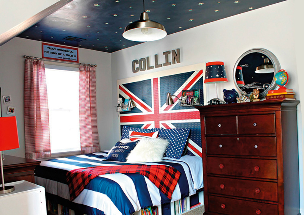 Цвета, используемые в британском флаге, не просто хорошо сочетаются, а идеально подходят друг другу, что позволяет использовать их для оформления комнаты.