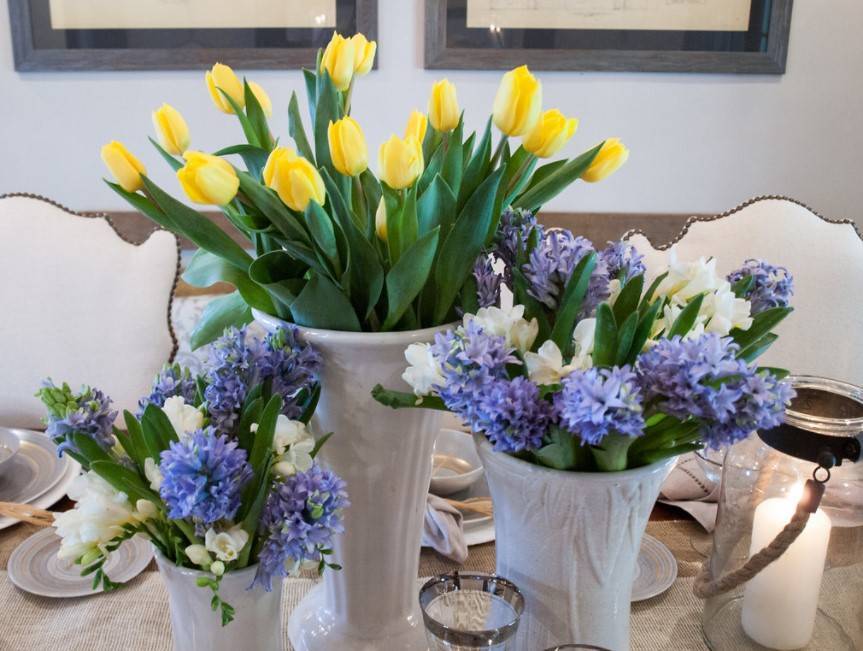 Украсить обеденный стол можно букетом из тюльпанов