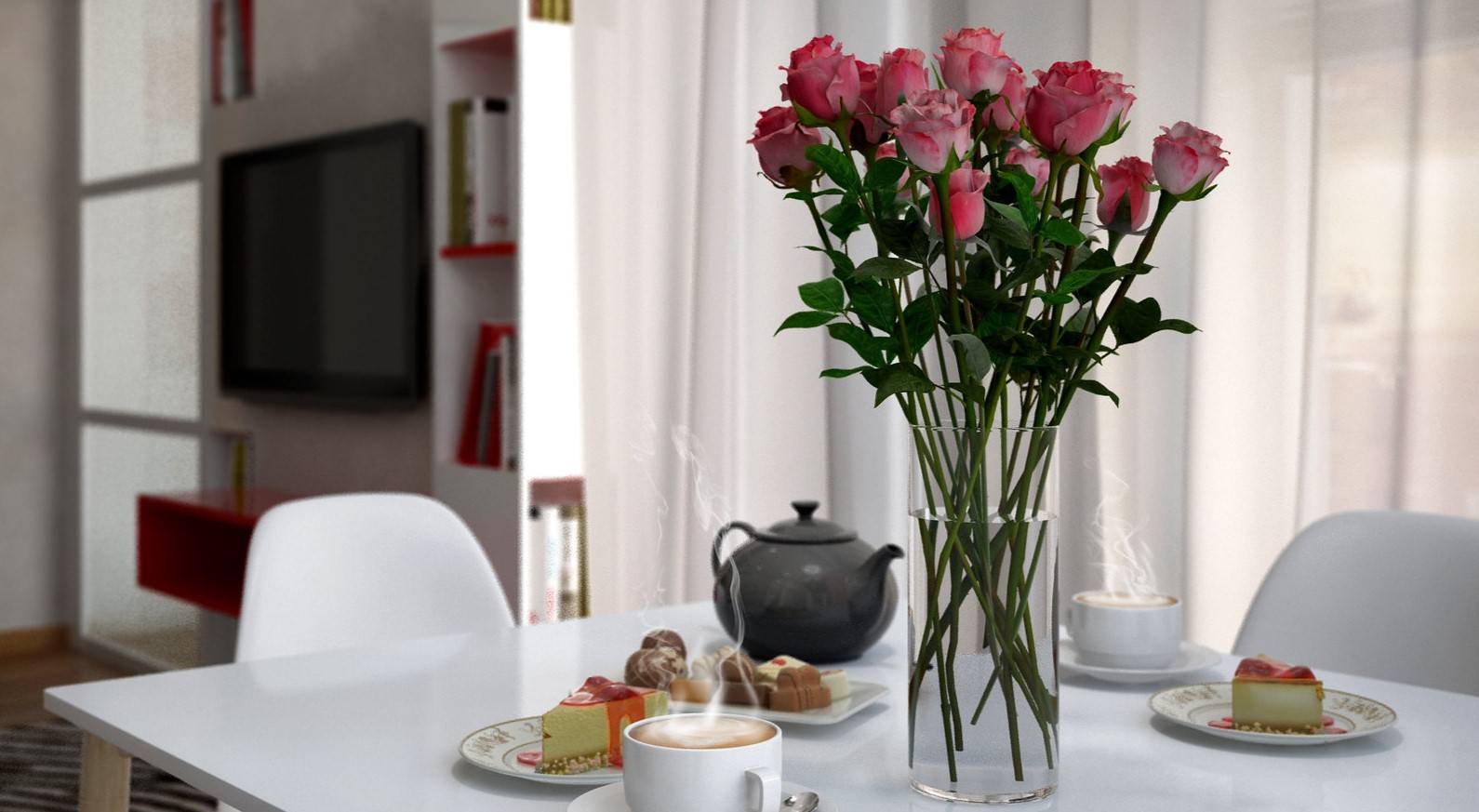Букет роз украсит интерьер современной столовой