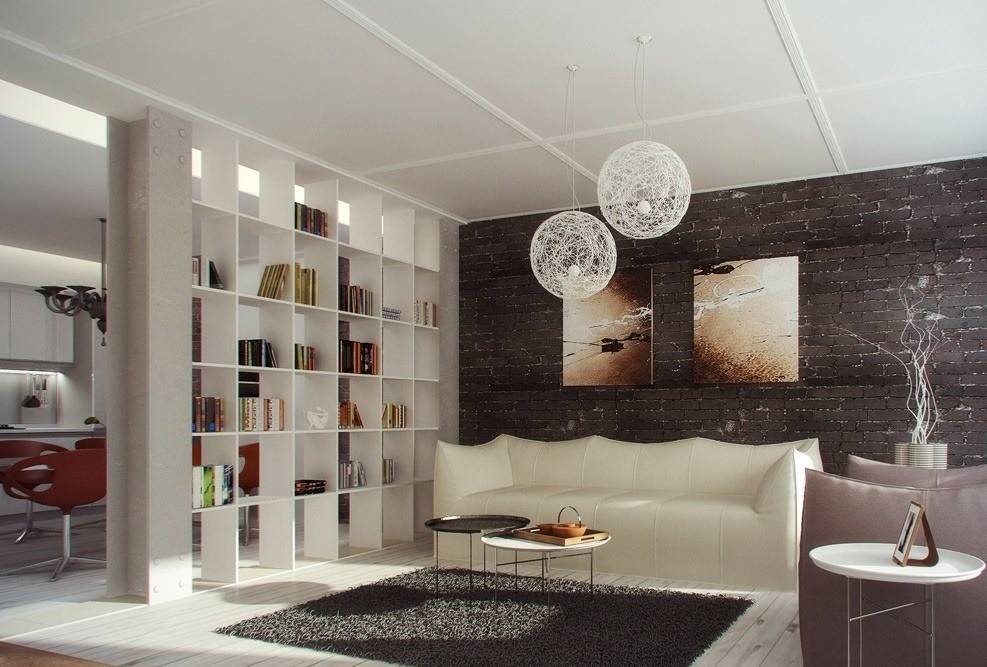 Ощущение легкости и простора возникает в комнатах, в которых перегородка не достигает потолка, примыкает к стене. Она может заменять обычный стол, низкий стеллаж, барную стойку.