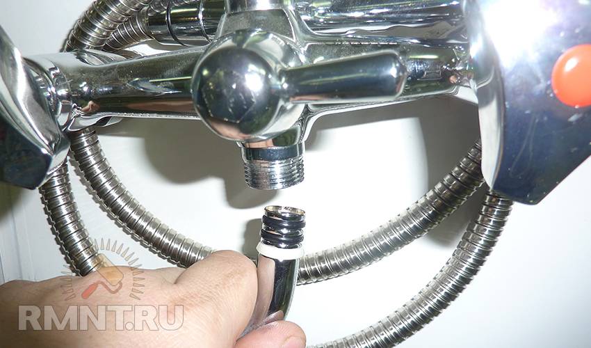 1. Руками откручиваем душевой шланг.