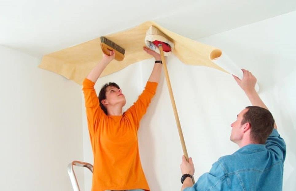 Поклейка обоев на потолок своими руками