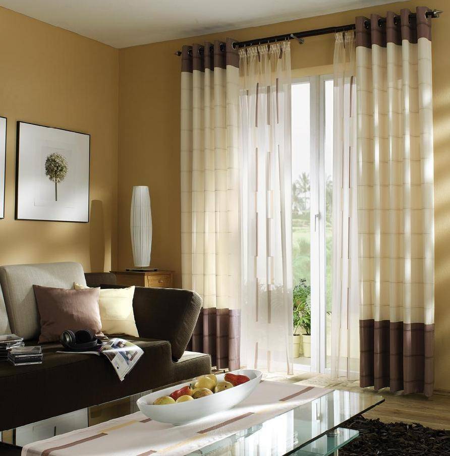Если конструкция необходима в гостиной, то самым оптимальным вариантом будет использовать карниз с двумя рядами. Это позволит использовать одновременно тюль и плотную ткань, таким образом максимально плавно регулируя степень освещенности комнаты.
