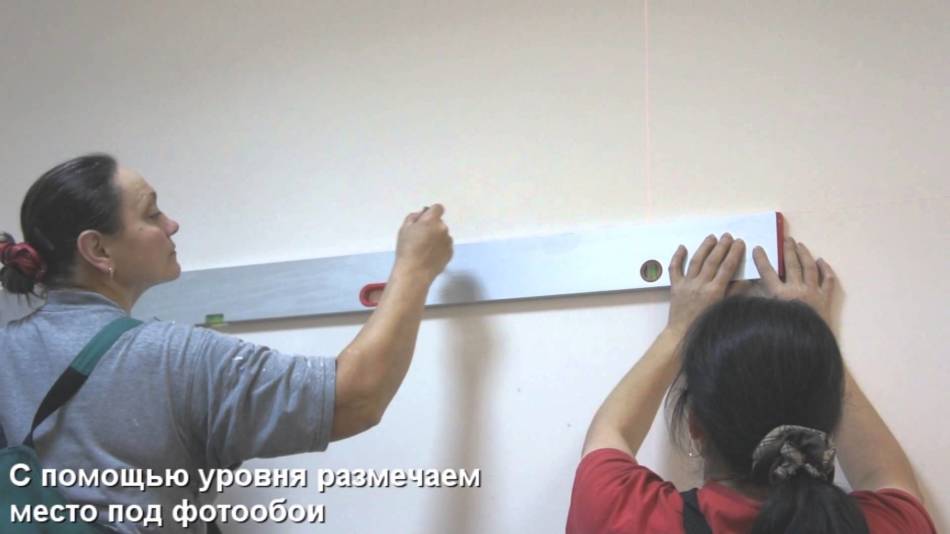Наклейку полотен производят перпендикулярно оконным проёмам. В противном случае естественный свет, льющийся из окон, некрасиво выделит все стыки. Для разметки от боковой стены отмеряют отрезок, равный ширине рулона. С противоположной стороны повторяют действие, а затем соединяют полученные точки в одну линию.