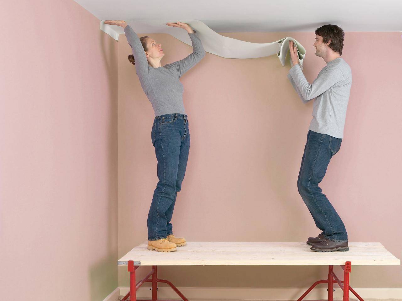 Технология оклеивания потолка обоями включает в себя следующие шаги: