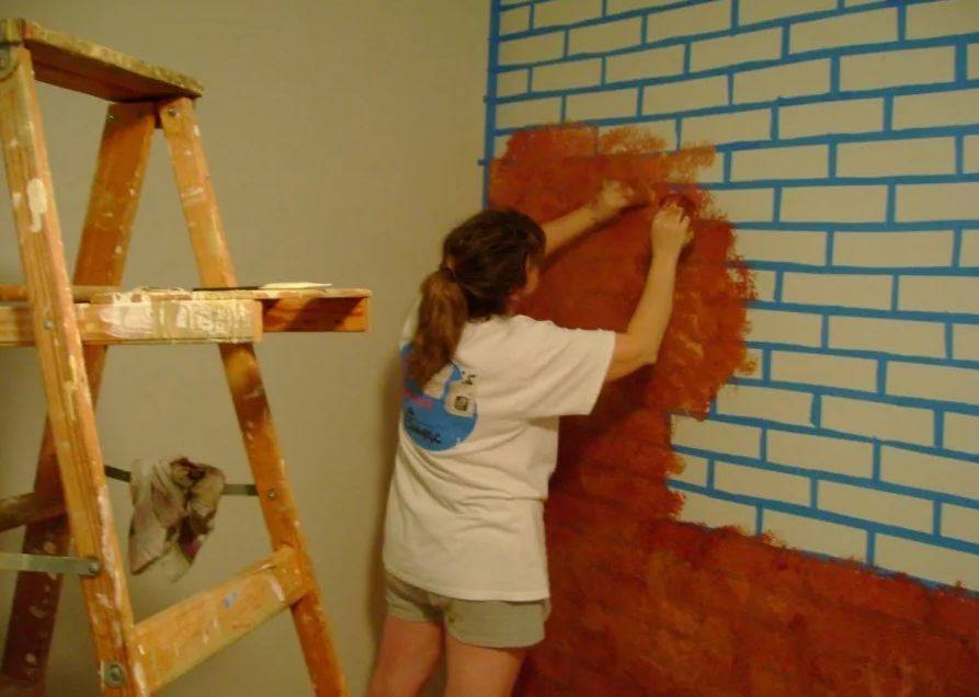 Все примыкающие области, а также границы, потребуется обклеить с помощью малярной ленты. Под стеной необходимо постелить бумагу либо наклеить пленку. Это нужно для того, чтобы не пришлось отдирать краску с пола. Красить стену из кирпича необходимо как минимум в два слоя, причем второй нужно будет нанести только после того, как застынет первый. Процесс может занять приблизительно 7-9 дней.