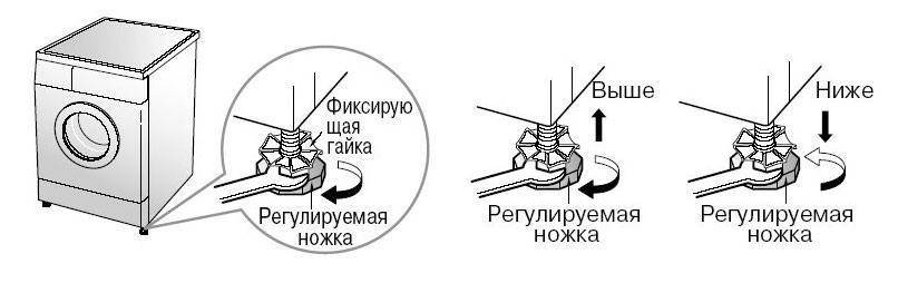 Небольшие неровности полов можно отнивелировать, вращая ключом регулировочную гайку на опорных ножках вправо или влево. Это позволяет изменить их высоту на 1-2 см вверх или вниз.