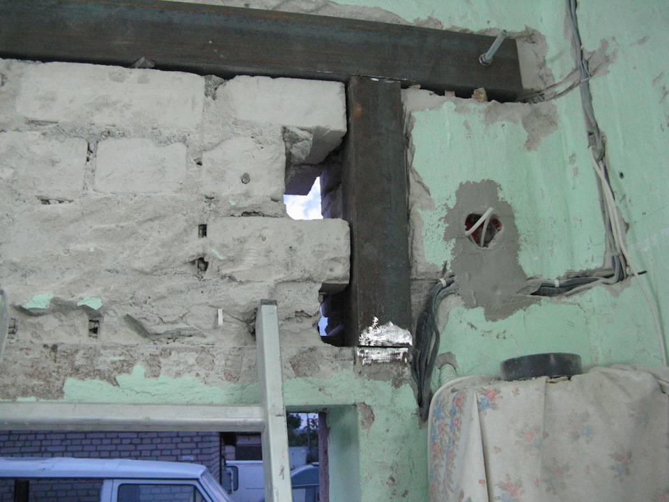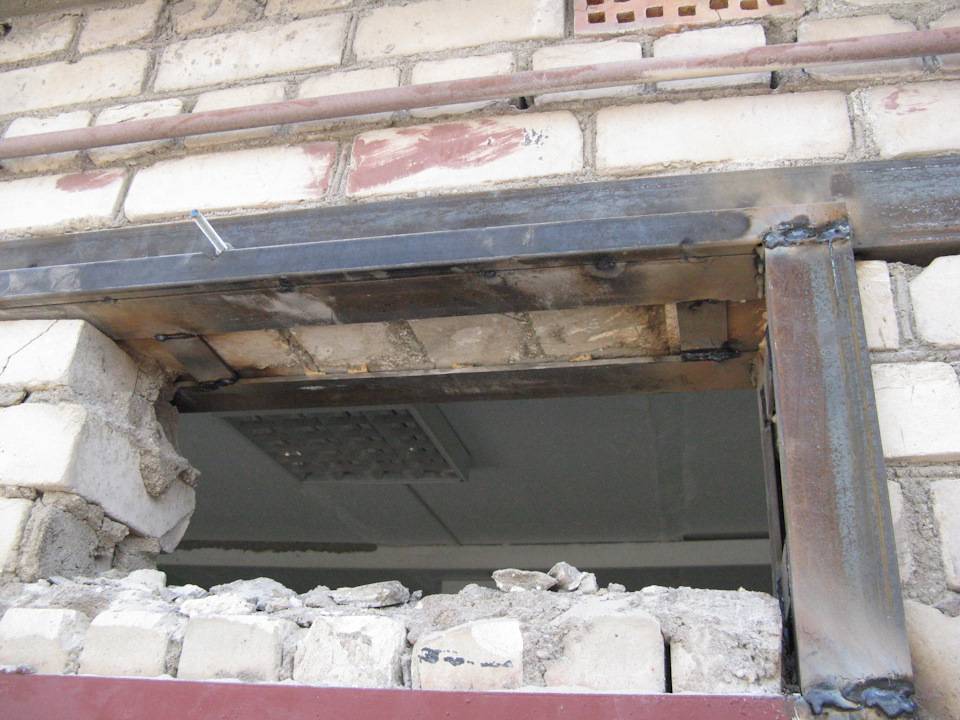 Основная операция — это выбивание старых кирпичей и создание нового каркаса створок прошла за один день, подготовительные работы заняли, конечно, больше времени, но и никаких особых хитростей не использовалось, никаких подпорок и поддомкрачиваний крыши, всё под силу выполнить даже одному.По деньгам:— уголок 100х100х7 мм длиной 7м — цена 115р. (