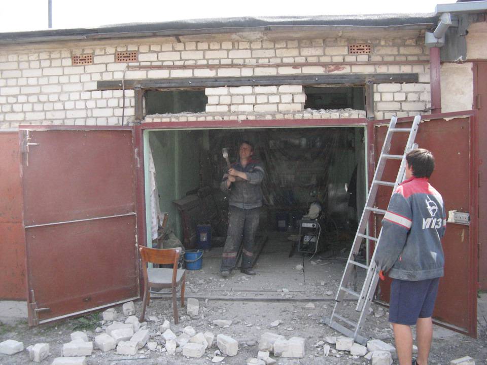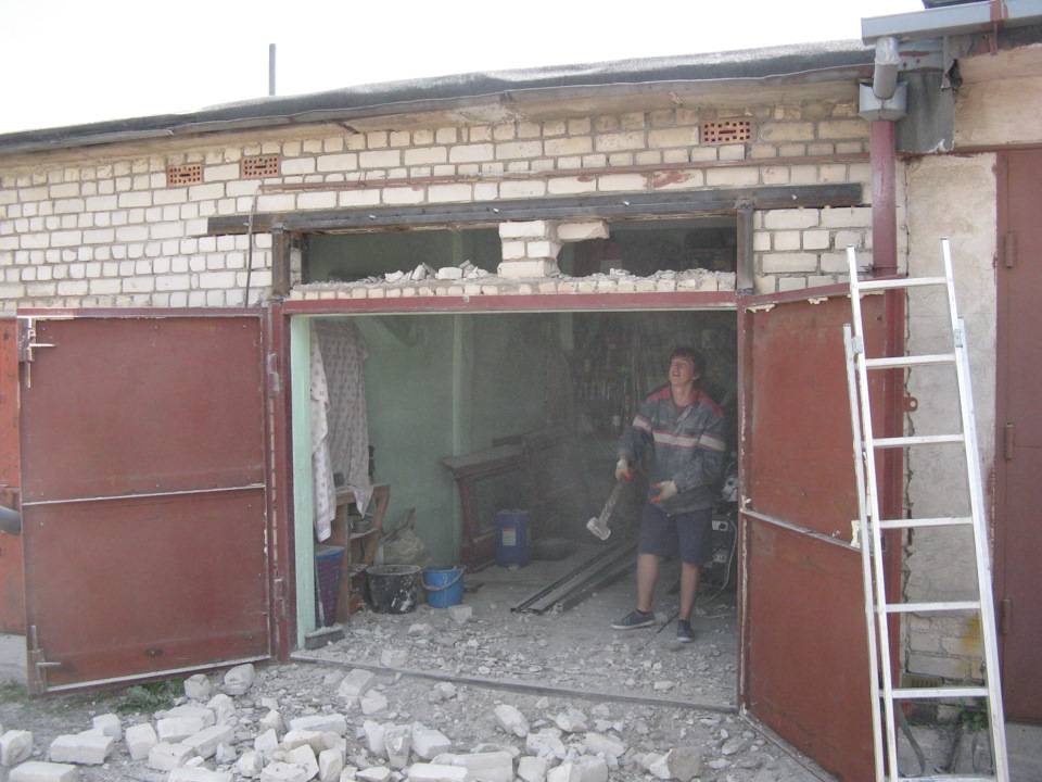 Шаг 6 — Приглашаем ребят с кувалдой и выбиваем ненужные кирпичи. При этом оставляем часть кирпичей по середине до того пока основательно не проварили конструкцию.
