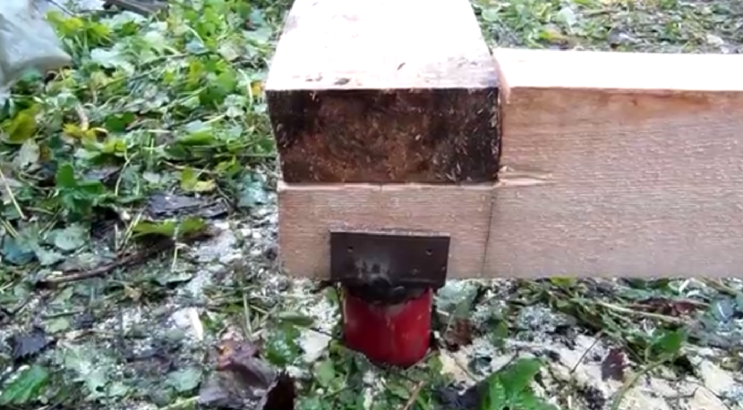 - По строительному уровню определяют, какую трубу добить, а какую оставить без изменений. Не снимая обвязки, башмаки приваривают к трубам, а брус стыкуют строительными шурупами.