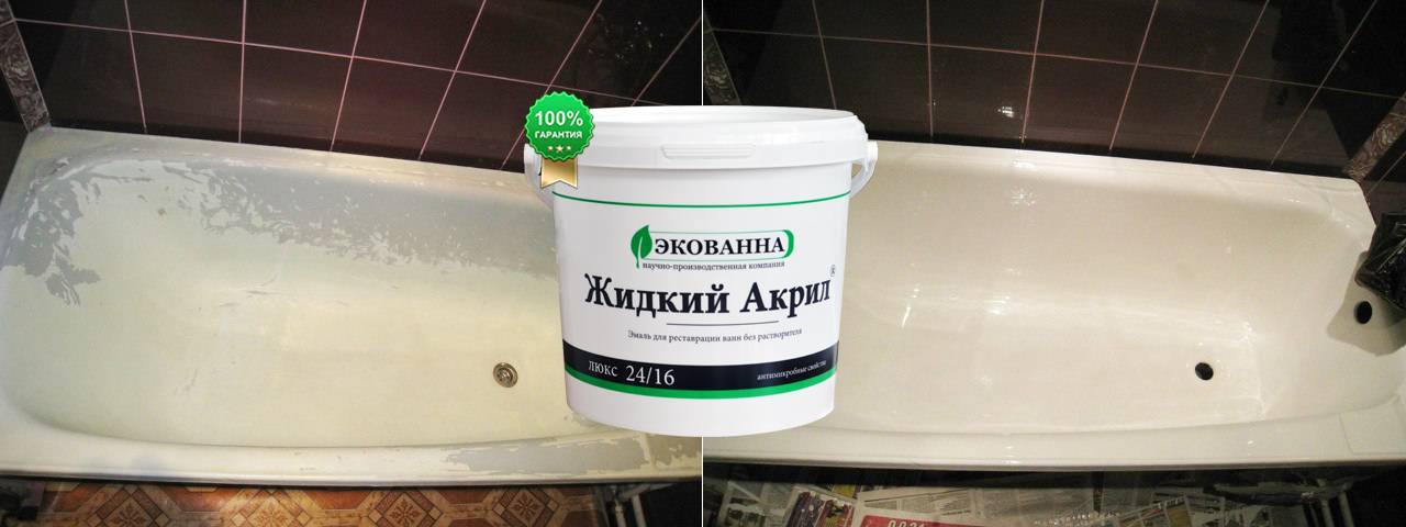 Пластол. Этот акрил является новейшей разработкой в сфере покрытия сантехники и ванн. Продукт производит российско-словенская компания. Материалом могут пользоваться как специалисты, так и обычные покупатели, поскольку он очень прост в нанесении и не требует специальных знаний и оборудования. Средство не включает в себя растворитель. В процессе работы на поверхностях не образуются пузыри и неровности, поэтому справиться с восстановлением ванны может практически каждый. Затвердение происходит в течение суток, а срок эксплуатации материала составляет до 20 лет.