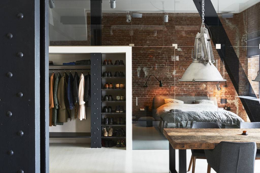 Лофт. Одну из стен можно оставить полностью кирпичной без отделки.