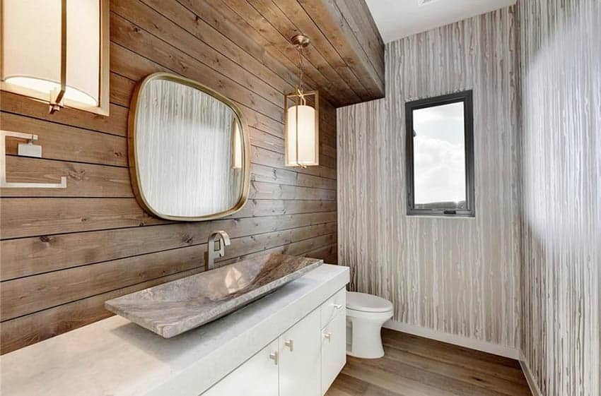 Изготовлен из натурального камня. В отделке ванной комнаты использован гранит, мрамор и базальт. Использование натурального камня для отделки не всегда возможно из-за слишком высокой стоимости материала. В ванных комнатах дизайнеры предлагают отделать стены и полы искусственным камнем, который по внешнему виду очень похож на натуральный камень.
