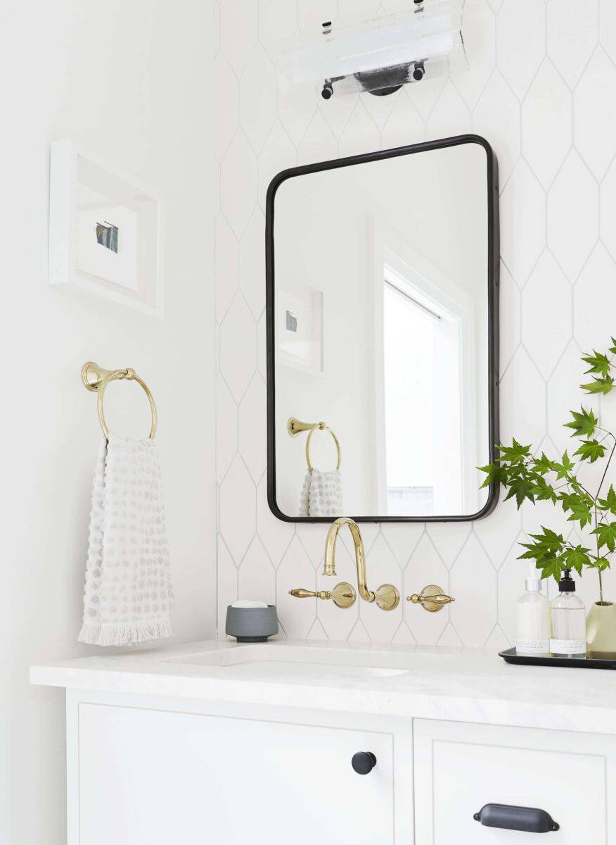 - В современном интерьере ванной комнаты дизайнеры рекомендуют использовать многофункциональную мебель. Например, настенное зеркало является одновременно дверцей навесного шкафа.