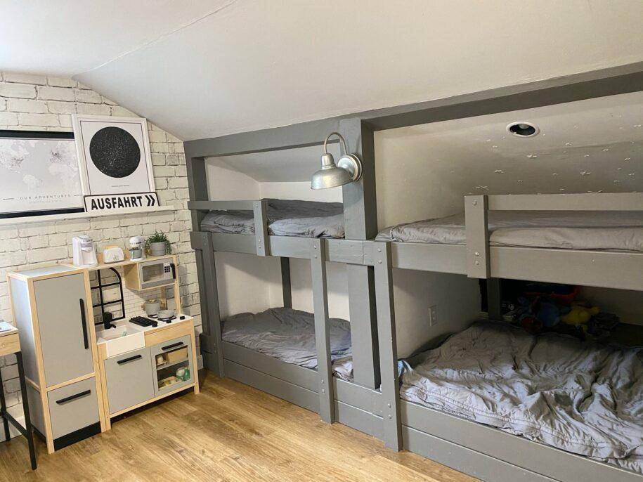 - в виде буквы «L». Верхняя часть только наполовину закрывает нижнюю кровать;