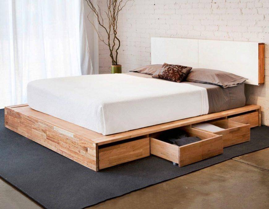 - Наличие встраиваемых ящиков – если под кроватью планируется размещение выдвигаемых ящиков для постельного белья или других вещей, то следует это учесть при планировании высоты каркаса.